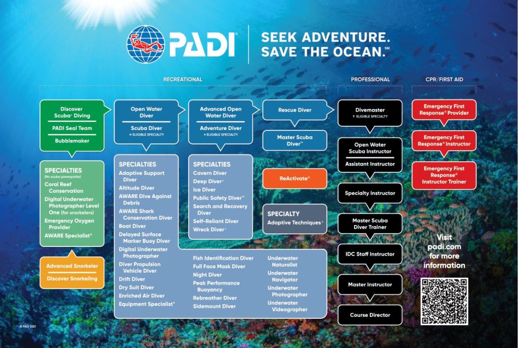 I am a PADI MSDT – a Master Scuba Diver Trainer trained and certified by the Professional Association of Dive Instructors, the most recognized dive training organization in the world.